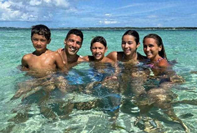 苏亚雷斯38岁仍光彩照人,一家五口幸福美满